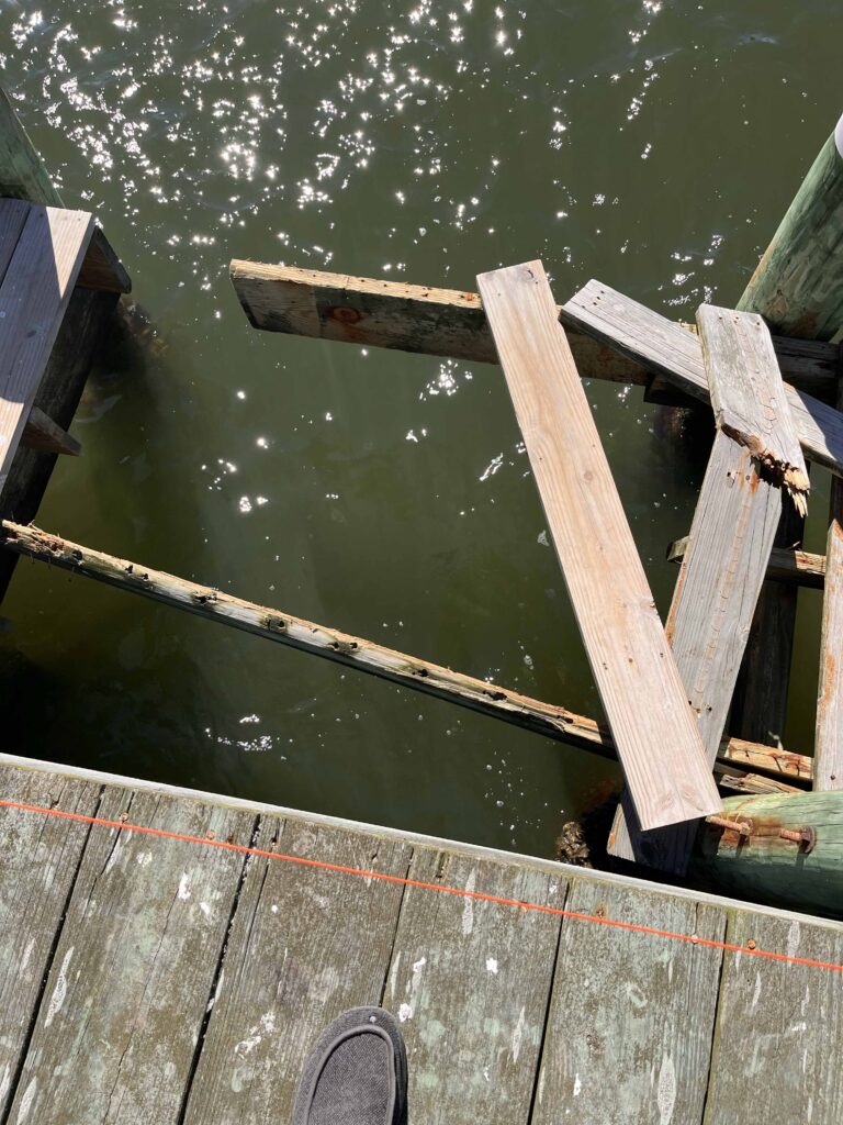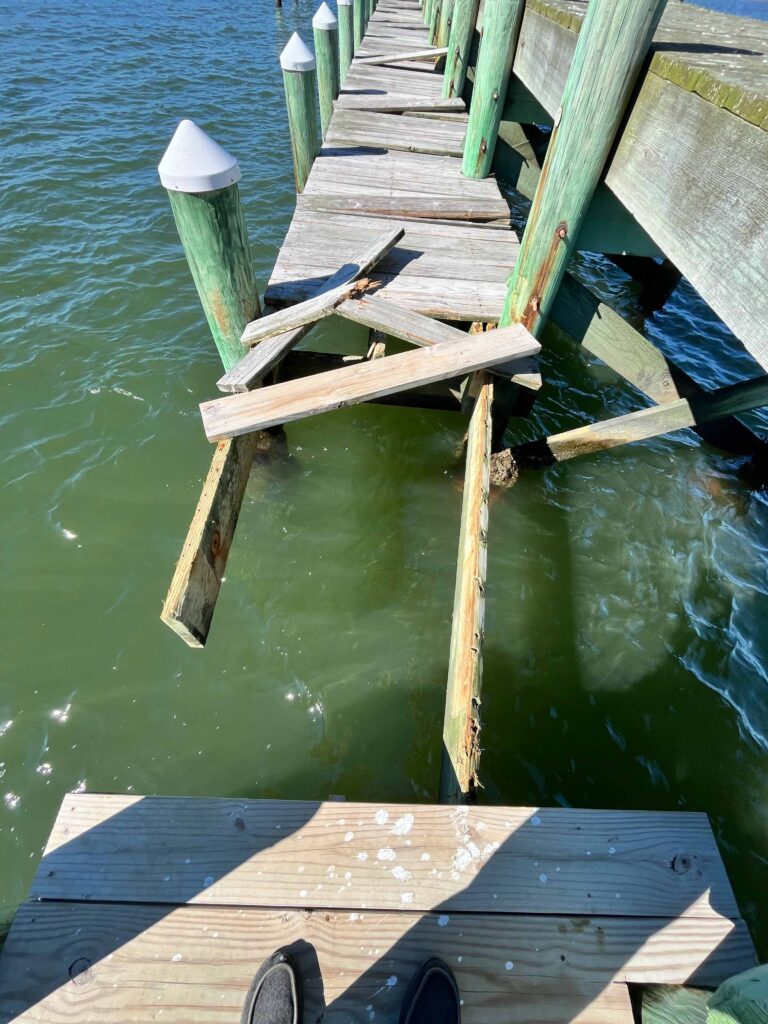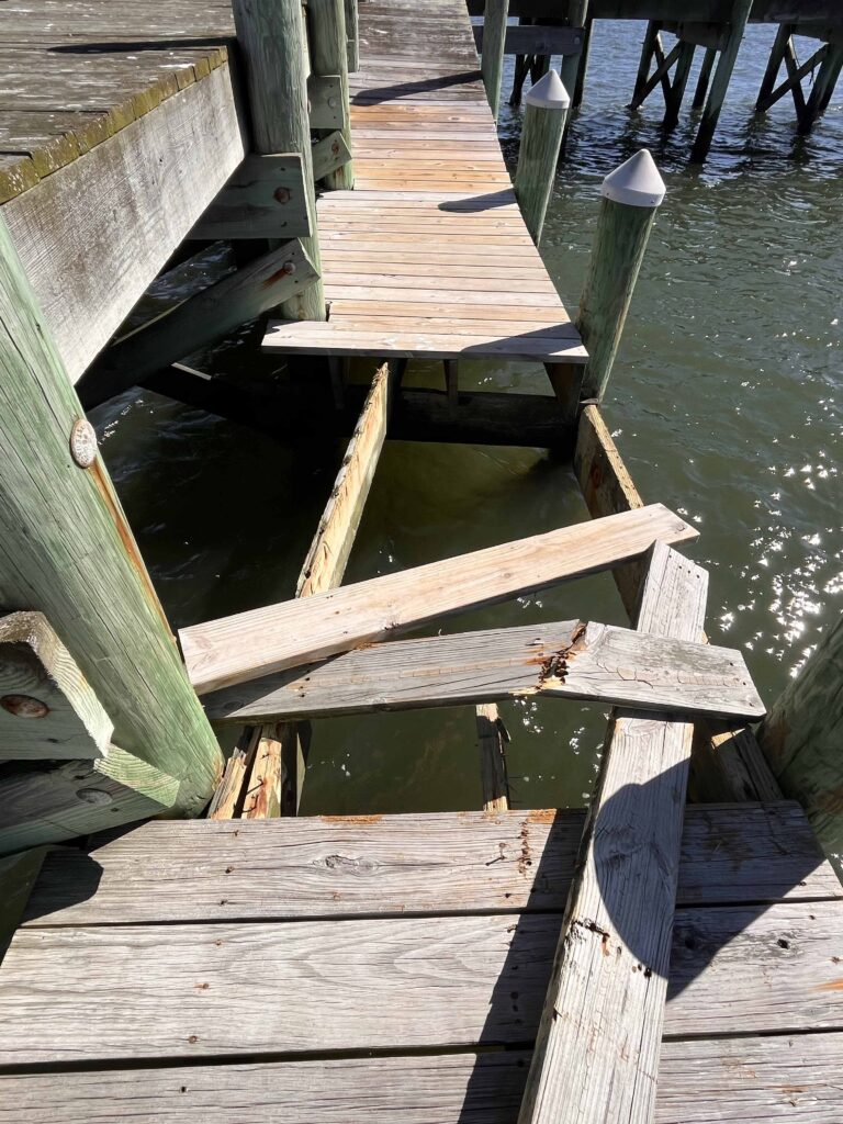 We’re happy to report that both the main pier and boat slip area remained unscathed.The only area affected was the low switch back ramp at the far end of the pier, which sustained some damage.